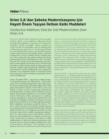 geçişin hızlandırılması yönündeki küresel çabaların “Orion is well positioned to be a key supplier of high-per-