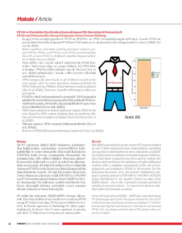 çocuk tekstillerindeki toplam PFAS’ların %5’inden azını oluşturmaktadır (Ragnarsdottir ve ark. 2022; Xia